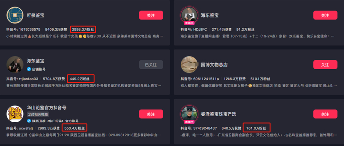要知道,在今年2月,听泉鉴宝抖音账号的粉丝量还只有500万,短短半年多的时间过去,暴涨了2000万粉,在一众鉴宝类博主中脱颖而出,实现了断层式领先。