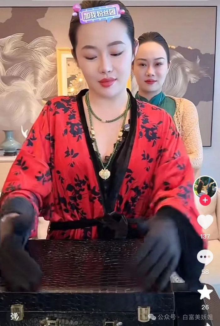 某次室外的场景,四姐安排了几位旗袍美女端着盒子出场,妖姐差点以为是什么选美比赛现场👇