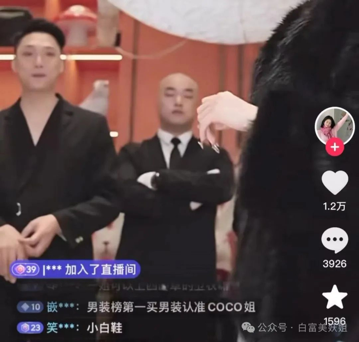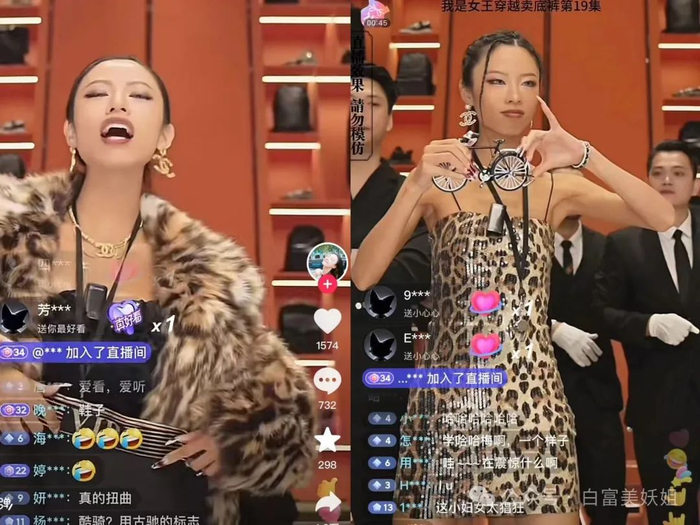 妖姐第一次点进她的直播间,她身穿超级浮夸大皮草,背后站着清一色外国男模。