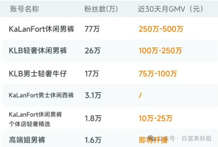 不过很戳男粉的心,他们哐哐下单,高端姐6个品牌近30天带货额加一起,得有435—875w。