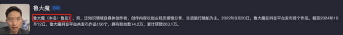 根据上述爆料,电商天下查询到,“鲁大魔”真名很可能叫“鲁岳”,在抖音上拥有近80万粉丝,且其发布的内容的确与创业息息相关。