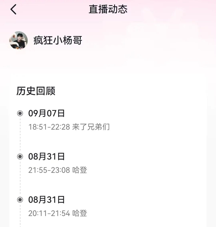 “疯狂小杨哥”抖音账号直播记录显示,最近一次直播停留在9月7日晚。彼时,小杨哥已深陷大闸蟹事件中,被辛巴追着“代赔1亿元”。