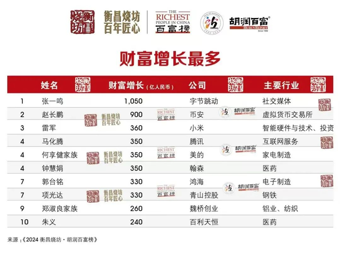 张一鸣成中国首富!2024胡润百富榜发布,李嘉诚父子、李兆基家族进入榜单前十