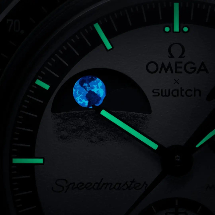 范主身边很多懂表的朋友,在第一次听到“地相表”这个名词时,都表示为这个概念心头一震。初听有些“反常识”,越想越觉得Swatch这个创意很绝,以一个前所未有的角度,重新定义了“太空浪漫”。