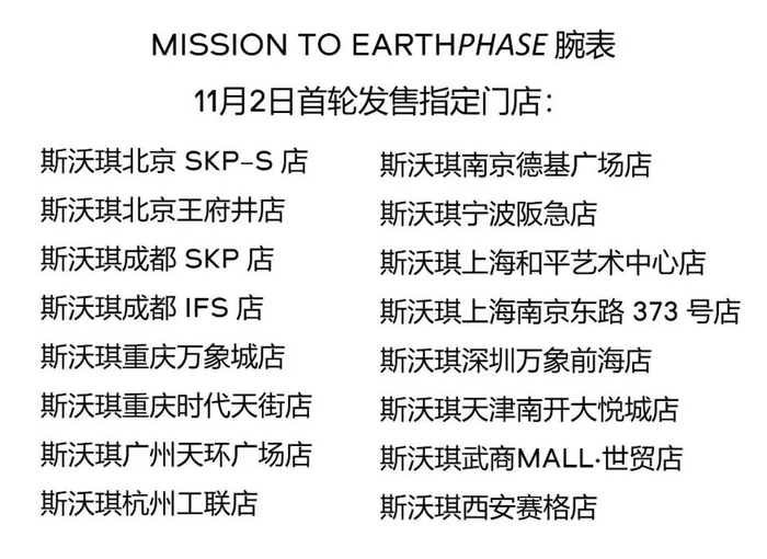 从今天起,这枚新表会在全球指定Swatch门店发售,虽说并非限量款,但也是每人每天每店限购1枚,想要入手这枚历史性的腕表,一定是要靠抢的!