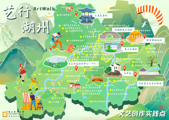 11月7日的“强基工程”专题培训班开班仪式中,湖州市文联更发布“Art Walk 艺行湖州”地图,围绕“共筑文化 绘就青绿”主题,全面汇集了域内艺术乡建特色村、文艺创作实践点的标志性乡建成果。