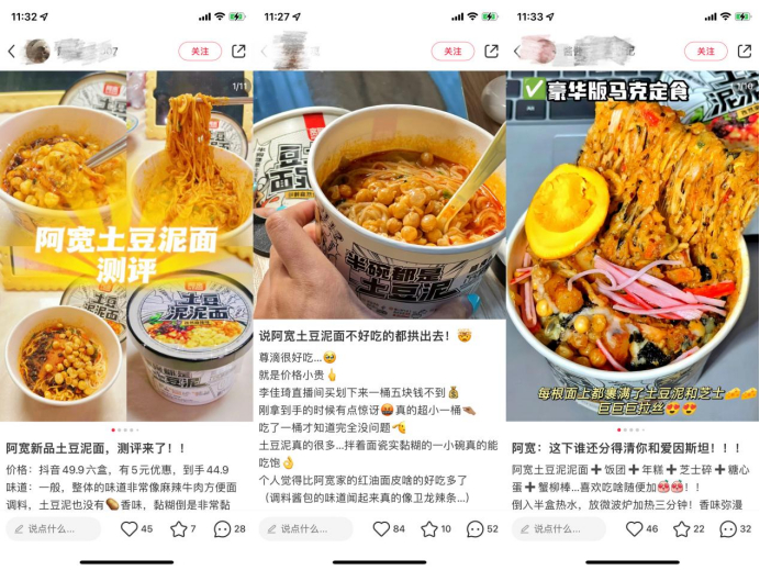 土豆泥泥面最初只有成都地域特色风味的孜然烧烤味型,通过对目标受众的调研与互动,阿宽食品陆续研发出了火鸡面甜辣风味、番茄酸甜风味、老坛酸菜味等产品,满足更多消费者的需求。