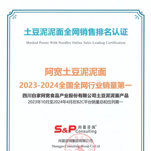同时,阿宽土豆泥泥面也荣获了全国全网销量第一的认证。这个销量第一,是无数消费者、经销商和终端对阿宽品牌认可的有力证明。它代表着阿宽食品在产品研发和市场推广上的成功,也成为食品行业的成功案例。。