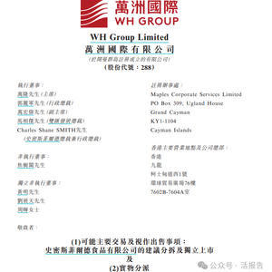 万洲国际将于12月6日举行股东大会,处理建议分拆史密斯菲尔德食品到纽交所或纳斯达克独立上市,以及相关实物分派的议案。