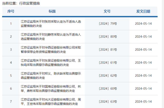 处罚不止步于上市公司。今年5月,江苏证监局连开8份罚单,与金通灵项目相关的中介机构及从业人员均被处罚,包括华西证券、光大证券、国海证券、东吴证券(601555.SH)、大华所。