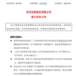 在12月16日的公告中,华西、光大、国海三家券商均表示,鉴于该案审理拟适用代表人诉讼程序,且尚未开庭审理,最终涉诉金额存在不确定性,暂无法判断对公司当期利润或期后利润的影响。