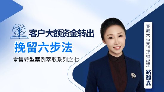 吉林银行长春分行亚泰大街支行理财经理路馥嘉在工作实践中总结出的客户大额资金转出挽留六步法及话术,变“流失”为“留存”,稳定网点存量资金的同时,带来增量资金,通过案例萃取形成的最佳实践,更是在分行网点晨会上推广。下面,结合路馥嘉挽留客户的一个具体案例,帮助大家了解一下她是如何利用六步法将一位计划转出200万资金的客户发展成私行客户的。客户王某,男,60岁左右,比较有个性、说话语气强硬,爱看时事新闻。在了解到一些碎片化的信息后,感觉钱存在中小银行不安全,打算将200万元资金转到国有大行,便来网点办理转账业务。