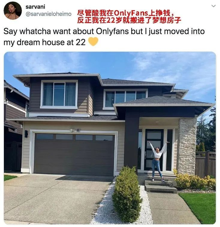 自从加入了OF,用自己可爱性感的照片,吸引了大量粉丝,不仅搬进了自己的梦想之屋,还帮助到了自己的家人朋友。