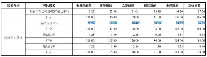 以近三年平均值与同行可比公司相比较,电投新能源的资产负债率均高于同行可比公司。