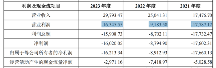 据报告书,2021年—2023年,宝塔实业的营业利润为-1.78亿元、-0.92亿元及-1.63亿元。