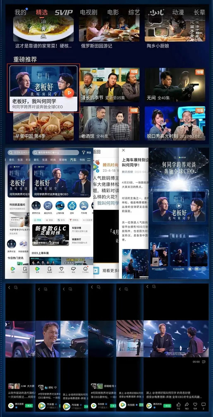 如果说,何同学与奔驰CEO康林松的对谈是一次腾讯视频垂直整合的破圈典范,那么进入2024年,当腾讯视频联手视频号,进一步打开社交场域,则意味着在传播维度上进入了全新阶段。