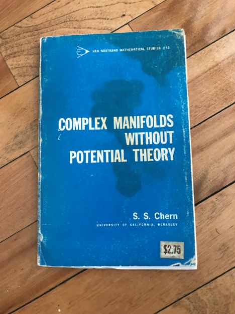 我师从陈先生,学习了复几何的陈氏特征类,对我的学问有裨益。陈先生60岁那年,在我行将毕业时,送了一本他写的书给我,书名叫《不具位势原理的复流形》(Complex Manifolds without Potential Theory)。他在书中亲题赠言,说:“余生六十矣,薪传有人,愿共勉之。”