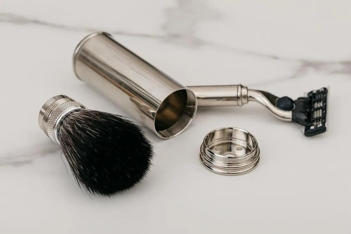 套装中包含一个剃须刀、一个剃须刷以及商务感满满的旅行盒。其中剃须刷采用了可拆卸设计,清理起来很方便,还不占地方,随时拆卸组合,便携又有乐趣。