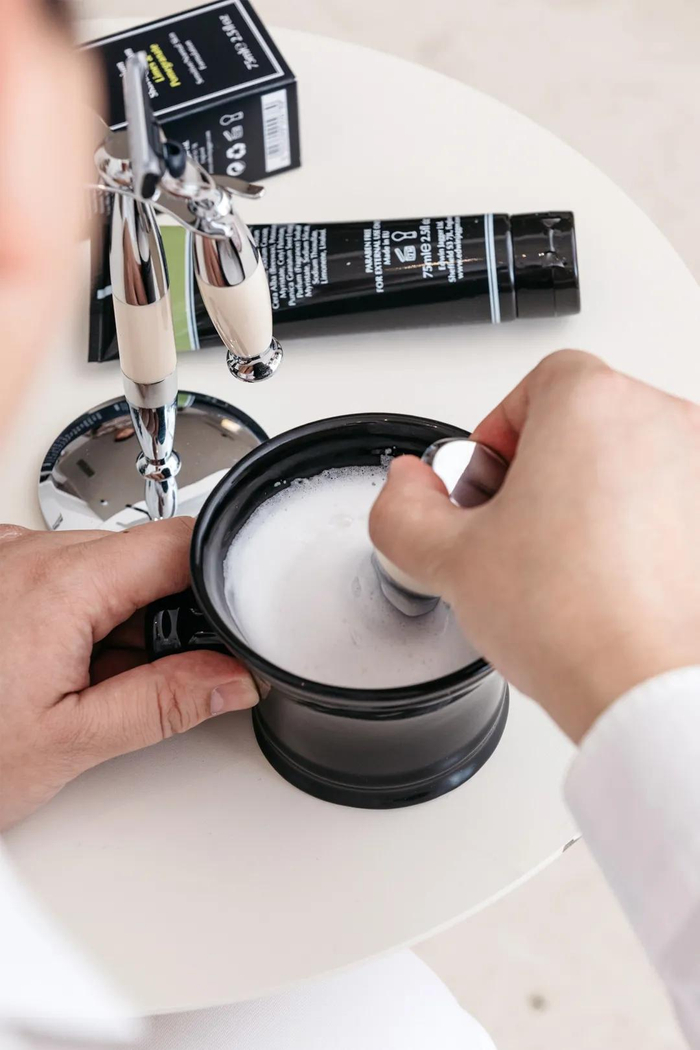 丰富绵柔的泡沫,是缓冲剃刀和皮肤之间摩擦必不可少的屏障,因此一把好的剃须刷和泡沫碗少不了。