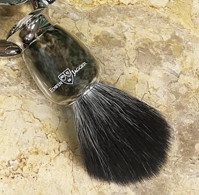 Edwin Jagger自主开发的环保獾毛刷,吸水性好、软硬适中,能够快速打出细腻泡沫,而且触感细腻不易致敏,可以360°全方面涂抹,洗脸时也能迅速清洗干净。Boy A操作了一下,几十秒就能打出丰富的泡沫,特别容易上手~
