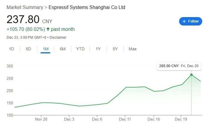乐鑫最近也是备受瞩目,受益于豆包大模型的AI玩具题材持续发酵,乐鑫股价近半个月出现了大涨,在12月10日和12月11日接连拉出20cm涨停板,一周内涨幅超过50%。