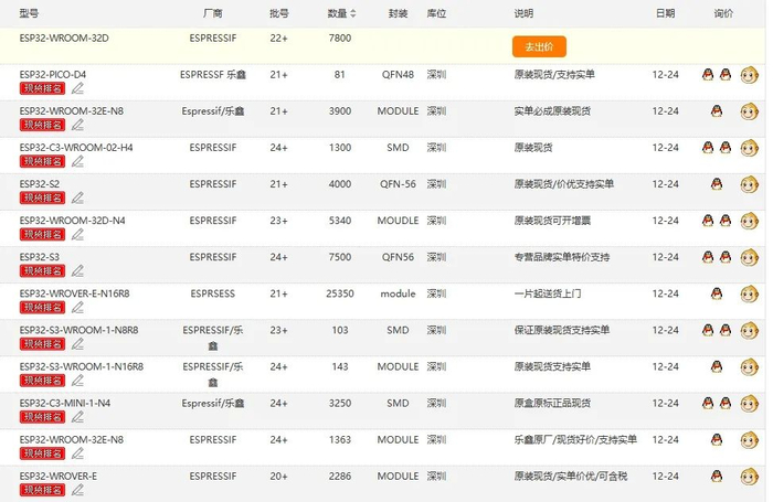 关于最新的缺货谣言,结合乐鑫相关人士辟谣,芯世相搜索发现,有关乐鑫ESP32卖断货的原帖目前已被博主删除,而某宝上相关产品并不缺货,为正常上架状态,有商家告诉我们“目前不缺”。各类芯片交易平台也有较高的库存,进一步说明这个谣言是假的。