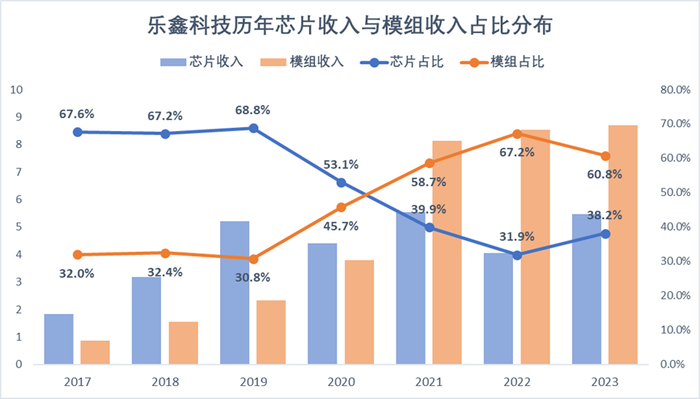 乐鑫分产品包括Wi-Fi MCU芯片和模组,2023年的销售比例中以模组居多,模组的营收为8.7亿元,芯片为5.47亿元。来源:物联传媒