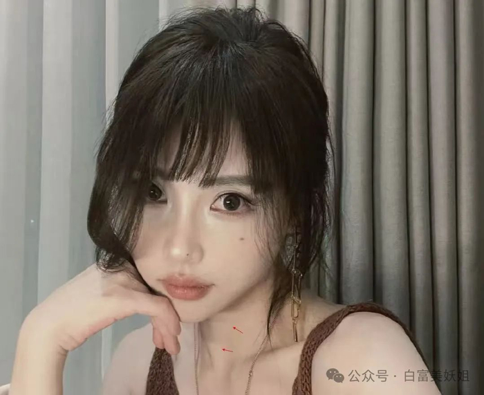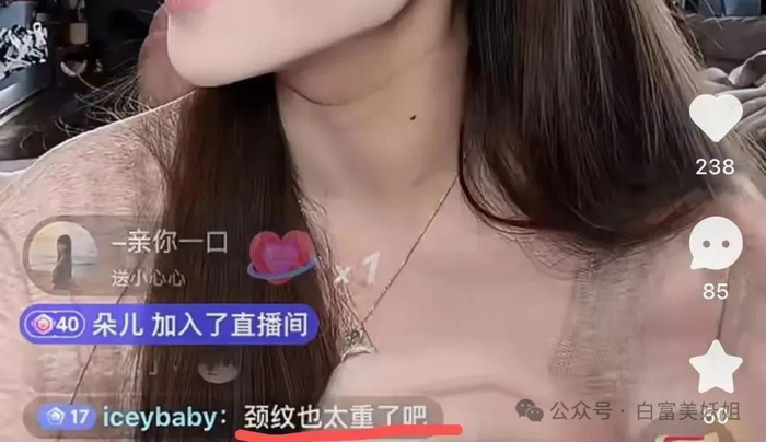 网红@韩笑mia,之前颈纹重到被直播间网友吐槽。