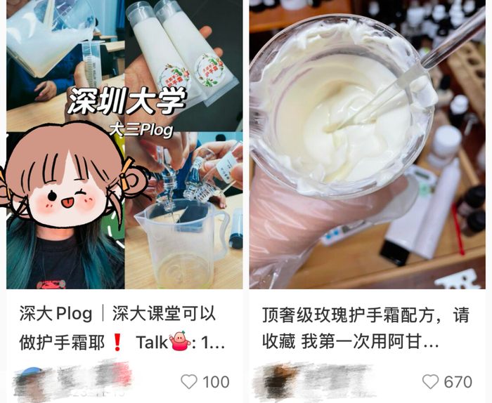 它是每一个“现代炼金师”的入门测验,是随便拎出一个应用化学专业本科生都能给你在实验室鼓捣出来的单品。多年前我在实验室做出来第一个敢用的东西就是护手霜,仅需半小时,我们班这群墨水都没半瓶的精细化工专业大二生,就已经拥有了真手作真匠心真独一无二份的护手霜,质地雪白、上手湿润,乍一看和拼多多上9块9的维生素e乳液没什么不同。