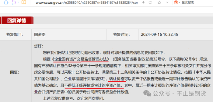 根据《企业国有资产交易监督管理办法》(国务院国资委财政部第32号令,以下简称32号令)规定,国有产权转让在符合32号令第三十一条规定的前提下,相关审批部门按照第三十三条审核相关文件并充分考虑必要性后,可以采取非公开协议转让。满足第三十二条相关条件的非公开协议转让情况,按照《中华人民共和国公司法》、企业章程履行决策程序后,转让价格可以资产评估报告或最近一期审计报告确认的净资产值为基础确定,且不得低于经评估或审计的净资产值。其中,最近一期审计报告的净资产值是指转让标的企业合并资产负债表中的归属于母公司所有者权益合计数值。