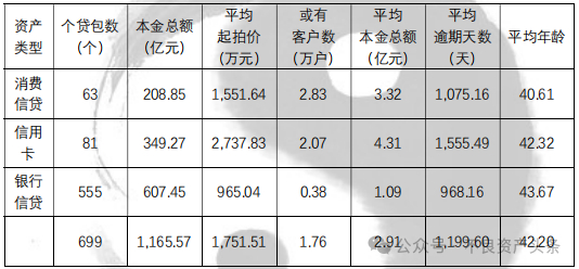 3、从批转个贷包特征来看,资产包规模最少4户,最多26.80万户;最小本金规模161.40万元,最大本金规模23.95亿元,规模跨度较大;最短加权平均逾期天数84天,最长加权平均逾期天数4314天,类似数据充分表明,个人不良贷款资产包之间存在较大差异,尤其是不同金融机构的不同信贷产品。