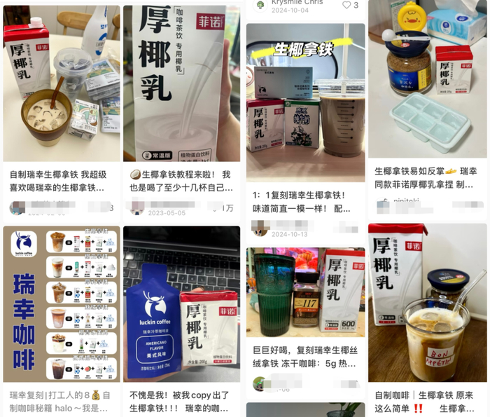 而在不少博主揭秘瑞幸生椰拿铁制作过程时,作为基底的菲诺厚椰乳也成功的走进消费者的视线,成为当年饮料赛道的热门单品。
