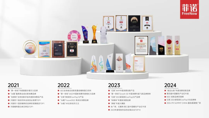 同时,菲诺还在2021年~2024年接连斩获了“第一财经”年度喜爱价值引力品牌、“36氪”最具商业成长新消费品牌、iSEE 创新品牌百强榜、“亿欧”WIM中国消费创新产品等数十家权威机构颁发的荣誉证书。
