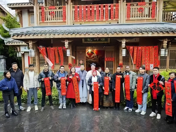 2025年1月25日,农历腊月二十六,“春联源地,联动世界”春节大集活动在成都天府新区-天府官塘(非遗街区)盛大举行。本次活动由四川大学文化产业研究中心、四川天府新区文创和会展局指导,四川天府新区非物质文化遗产保护协会、互鉴书院主办,官塘铸匠、薪火东方执行。四川大学文化产业研究中心主任、互鉴书院山长、“汉服博导”蔡尚伟担任此次活动主讲嘉宾,为现场和线上的海内外观众带来了一场关于春联历史与文化的深度解读。活动还吸引了众多非遗传承人、来自巴基斯坦、老挝、埃及、秘鲁等众多国家的外国友人以及传统文化爱好者的积极参与。