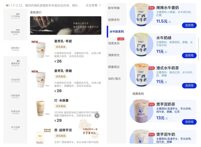 类似的,荆芥等小众食材,必须产自某个地方的米酿、桂花、抹茶、糯米,都对供应链提出了更高的要求。