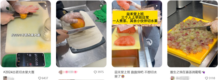 一句“剥葡萄剥得手酸”,虽是吐槽,却也悄然透露自家葡萄确实手剥;一张洗手池堆满各种绿叶菜的照片,虽是“我不是摇奶茶的吗怎么成洗菜工”的无奈,却也让消费者安心,喝下肚的确实是绿叶菜,富含膳食纤维;一条“在奶茶店工作随便问”,看似焦点访谈揭发内幕,善加利用却也可成品牌宣传的先头阵地。
