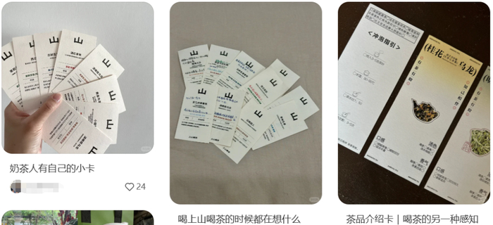 奶茶均价20元左右的云南品牌“上山喝茶”,上茶的时候附带一张名片,标明茶底、茶香及出品方式,就跟精品咖啡店会在托盘上放一张介绍咖啡豆来历和烘焙程度的产品卡一样。