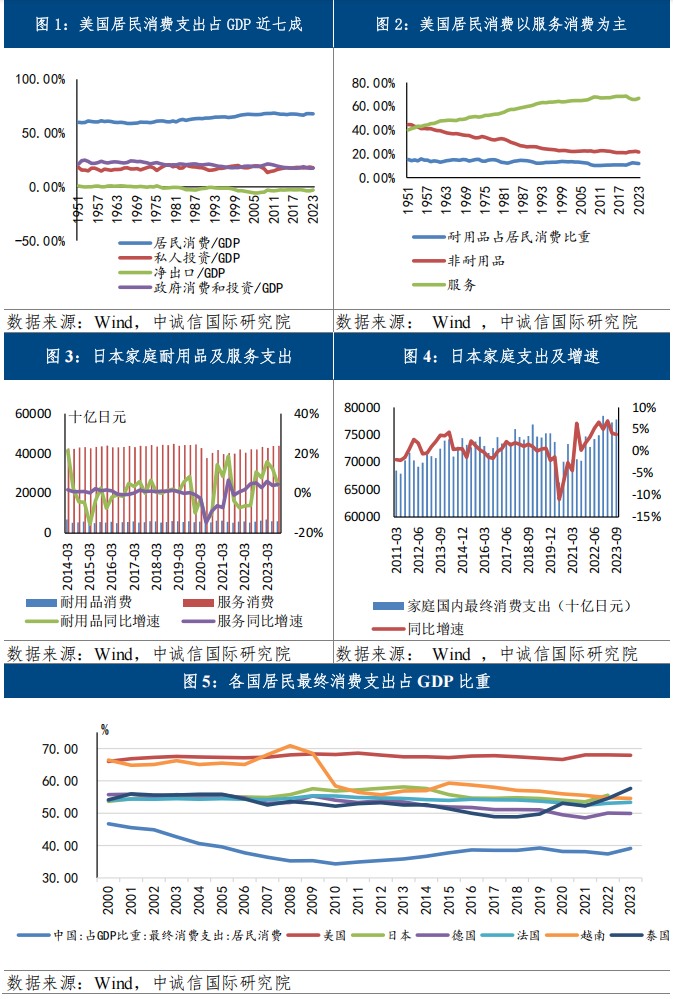 消费是拉动经济增长的重要引擎,2024年12月中央经济工作会议将“大力提振消费、提高投资效益,全方位扩大国内需求”列为2025年九大重点任务之首,意味着提振消费、扩大内需已成为稳增长的主要抓手。从刚刚过去的春节假期消费数据来看,春节假期国内消费延续恢复势头,但“量增、价低”的特征仍存。据文化和旅游部数据中心测算,2025年春节假期,全国国内出游同比增长5.9%,较2019年同期增长26.0%,国内出游总花费同比增长7.0%,较2019年同期增长15.2%。但是春节假期人均旅游支出仅恢复至2019年同期的九成,弱于2024年中秋及国庆。此外春节假期民航经济舱平均票价较2024年春节也出现下滑。如何有效激发消费潜力、促进消费稳定增长,助力我国宏观经济修复,已然成为当前经济发展的核心问题之一。本文通过梳理美、日等西方发达国家,泰国、越南等部分亚洲国家的居民消费情况,以及美日等国家应对经济下行期的消费刺激政策,总结对我国的启示,以期对后续消费政策制定及调整提供借鉴。