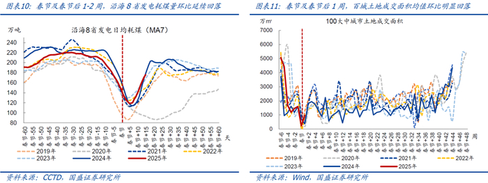 1.生产复工:耗煤、土地、钢材表需降幅小于季节性,螺纹钢需求显著偏弱