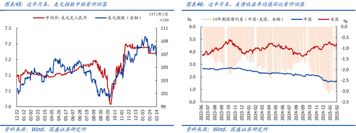 >汇率&海外市场:美元指数均值环比小降0.2%、收于106.8;美元兑人民币(央行中间价)均值持平前值。截至2.14,10Y美债收益率均值回落6.7bp、收于4.47%。