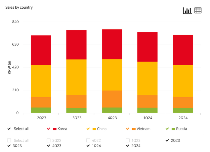 2023年好丽友总营收为29,123.58亿韩元(约151.15亿元人民币),韩国国内市场营收为10,357.61亿韩元,中国市场营收为11,729.06亿韩元(约60.87亿元人民币),其他市场营收为7,036.92亿韩元(主要为越南、俄罗斯)。中国市场的营收已连续多年超过了韩国国内市场,是好丽友的最大市场。