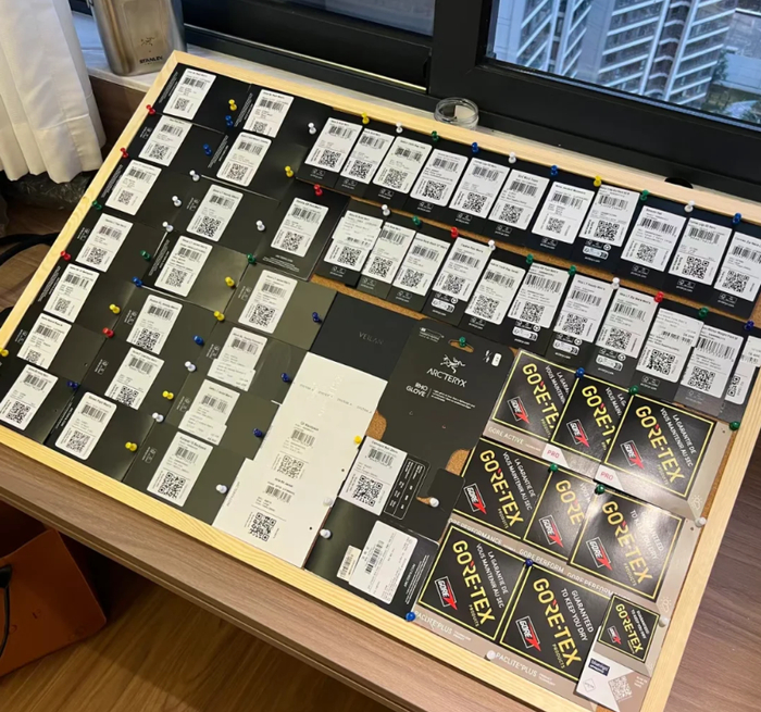 作为户外品牌的真顶流,始祖鸟的吊牌也有自己的“粉称”——【鸟卡】,所谓“始祖鸟边角料,黄牛小骄傲”。