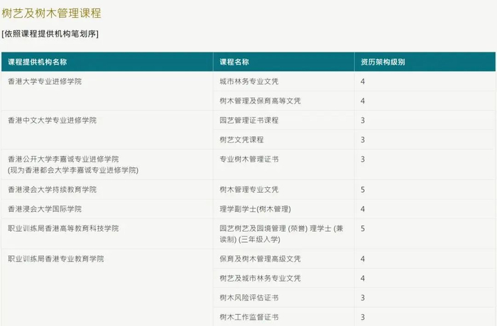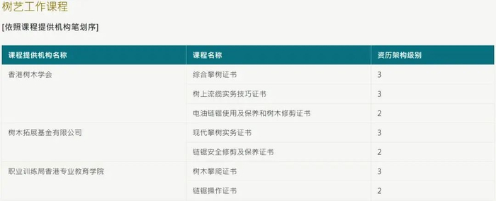 不仅要有相关的培训和技能评估,而且香港的攀树师还有注册制度,需修毕相关课程再加上一定年资,才能注册修树师,同时需要考取使用链锯的牌照,能熟练运用不同的攀树工具,方能树上工作。