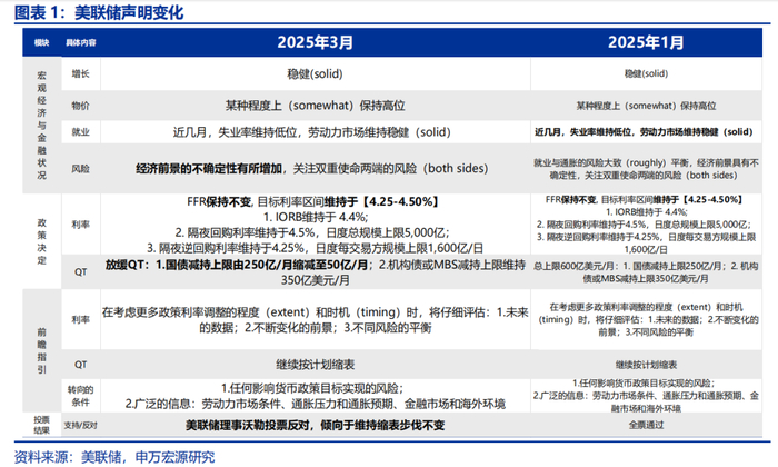 相比2018-2019年,美联储此次对经济不确定性风险增加对提示“前置”,是否可能是吸取了2018年9月“鹰派”加息的经验?美联储在2019年6月(降息开启前夕)也使用过“经济不确定性增加”的表述,但彼时距离2018年特朗普关税1.0落地已经接近一年,而当前特朗普关税2.0才刚刚开始推行,后续可能还有对等关税、301关税等增量变化,美联储在此次3月会议上就已开始提示经济风险。