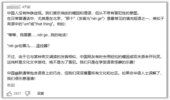 同行的李美越出现翻译错误,他会主动帮忙辟谣,以免海外观众对中国人产生误解。