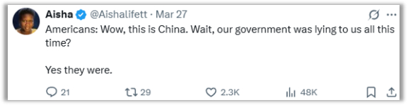 而在海外,观众们也从甲亢哥一场场连续不间断的直播里,发现了一个和BCC、CNN写得不一样的中国。