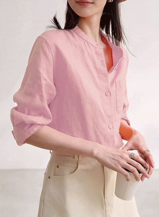 中式棉麻立领衬衫