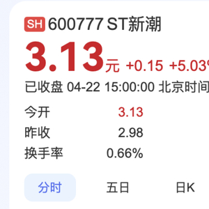 股价方面,近期ST新潮股价迎来一波快速上涨,3月20日收盘价为2.09元/股,4月22日报收3.13元/股,上涨幅度近50%,总市值达212.86亿元。