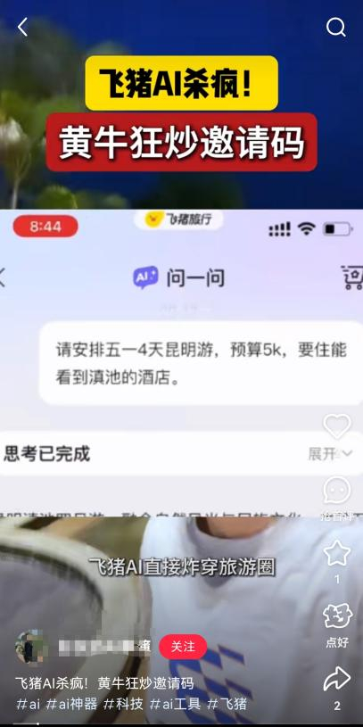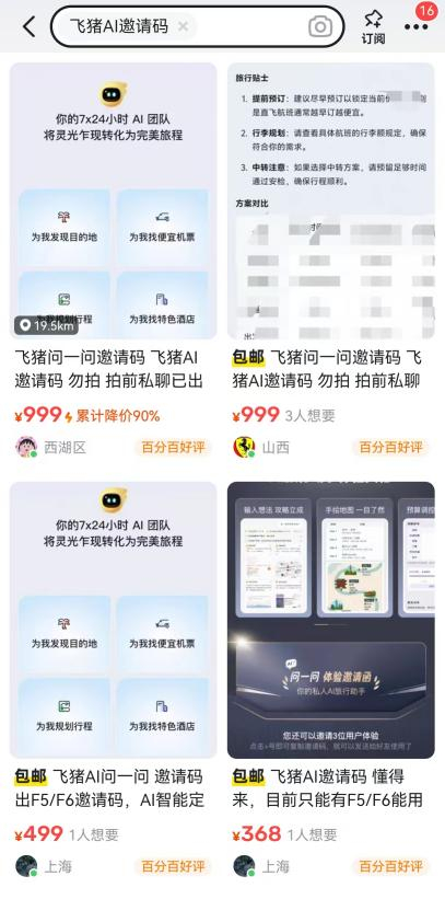 飞猪旅行AI邀请码被炒到千元,值吗?