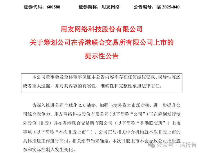 又有A股公司赴港上市!「用友网络」全球化2.0战略再下一棋